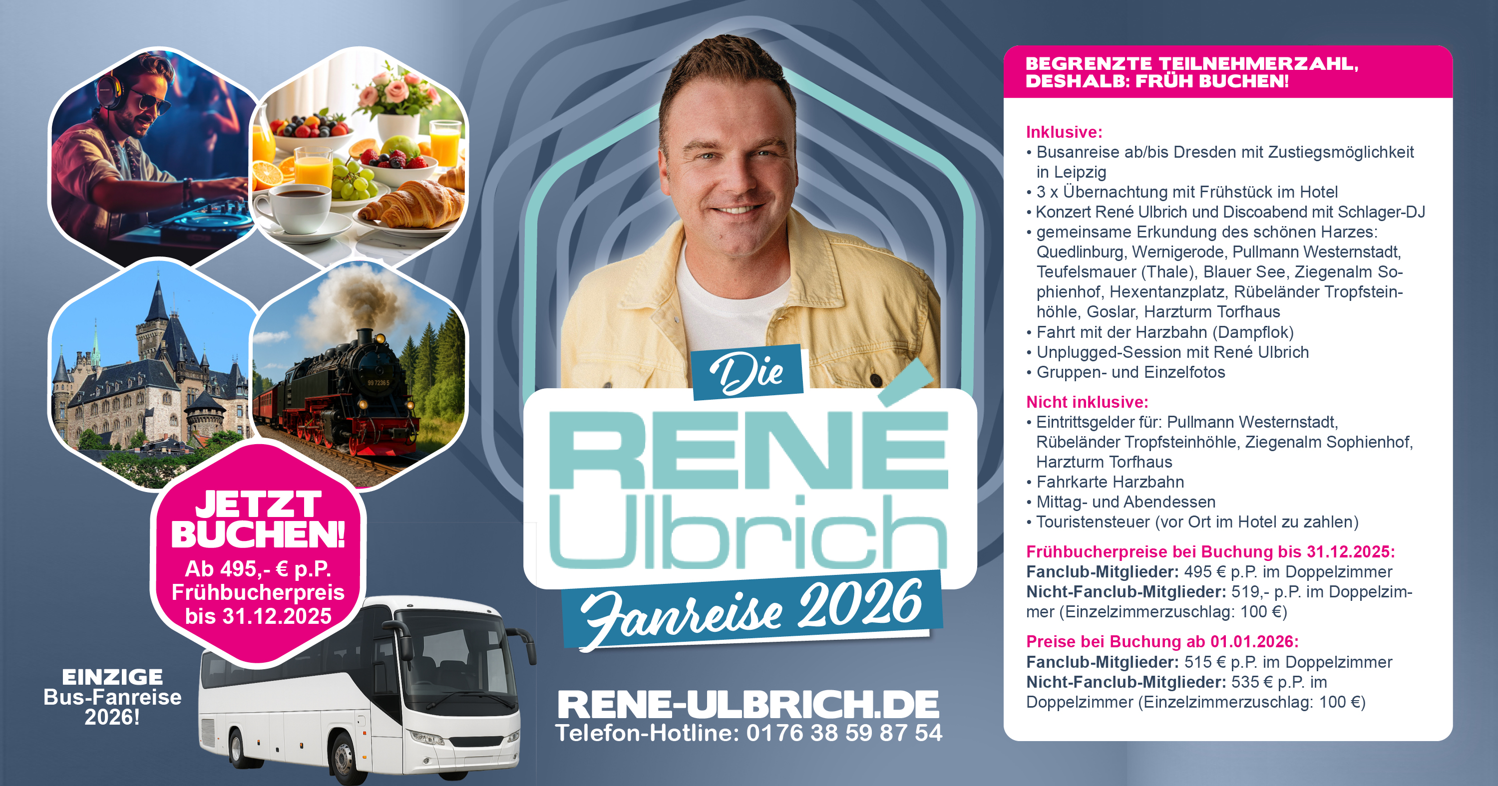 die einzige RU-Fanreise im Jahr 2026 findet vom 16.10. - 19.10.2026 in den schönen Harz statt.